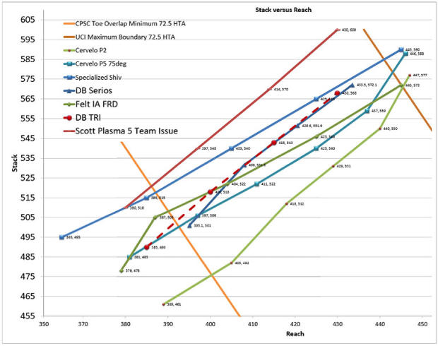 Accordingly, my view on how this bike will fit is as follows: Yes, it’s right down the middle, in terms of frame geometry to the head tube top. But I think the middle is a little high. I think we’ve gotten slightly too high, freezing out some of those who’d like to ride a bit lower. I’d like to see Diamondback offer a second bar as an OE option, particularly one that starts with a very low stack. Some might ask why I didn’t criticize the Omni for a geometry not so dissimilar to this geometry here. It’s because the bike is paired with TriRig’s Alpha X bar which is a very low bar unpedestaled. The Andean so-spec’d would be an interesting and compelling bike.