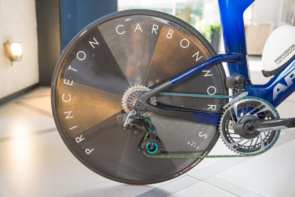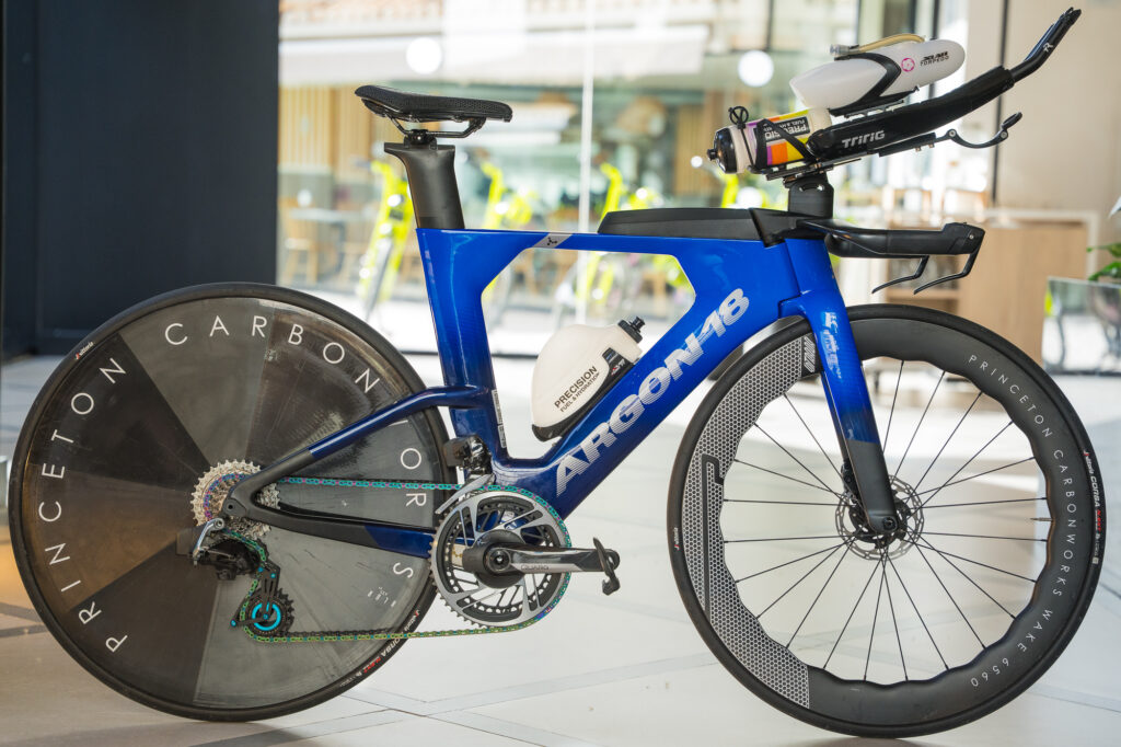 Marbella has a very hilly course, and she will be riding her trusty Argon-18 E119 Tri+ Disc to tackle the challenging course. Slowtwitch got the chance to check out her bike, and it is a sweet ride. Have a look at all the components below.