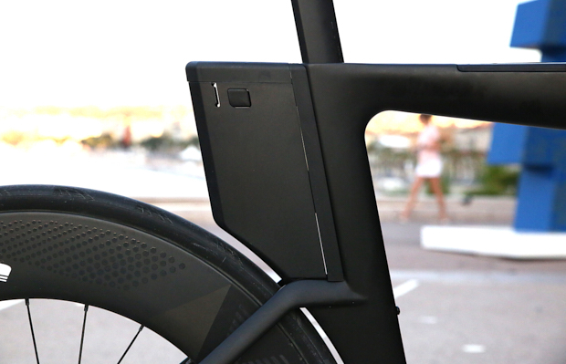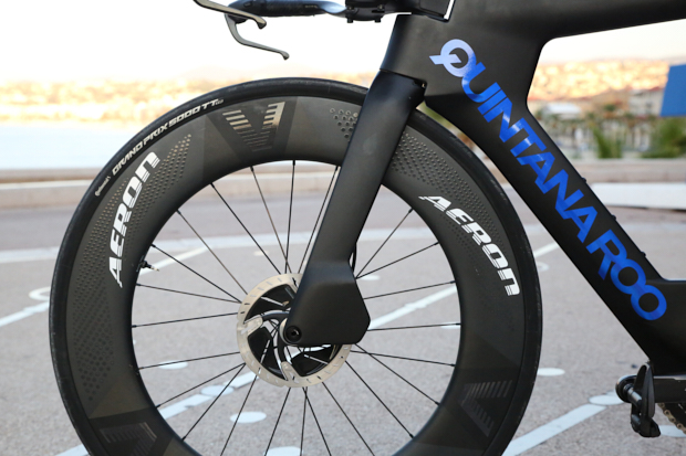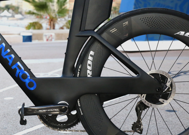That said, though, there's definitely some innovation happening further down the fork. There's a unique cowling to surround the front brake caliper and minimize the impact of the disc brakes — brakes that should be of benefit on a course like the one in Nice.