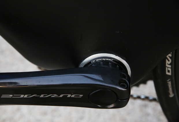 Hanson, like many athletes, relies on a CeramicSpeed bottom bracket, mated to a Shimano DuraAce powermeter crankset running 56-44 chainrings.