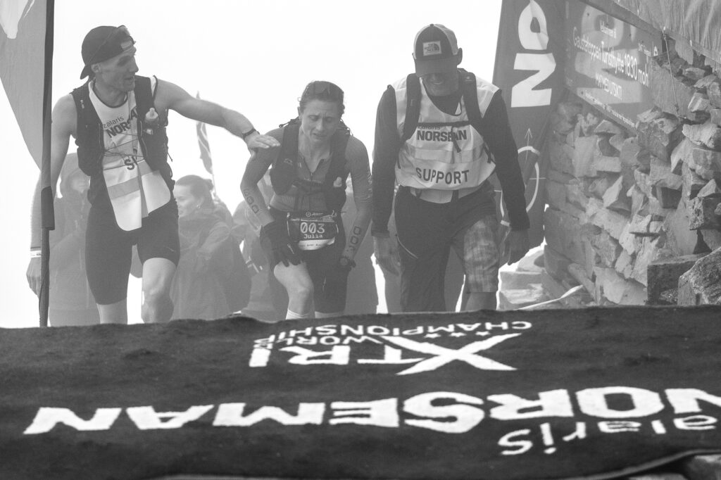 Nothing illustrated the extremes athletes have to deal with at the Norseman Xtreme triathlon more than the run course. For the top athletes things began with perfect conditions … only to become brutal as they made the final ascent to the top of Mount Gaustatoppen. As the rain pelted down and they climbed up into the clouds the athletes were pushed to their limits.