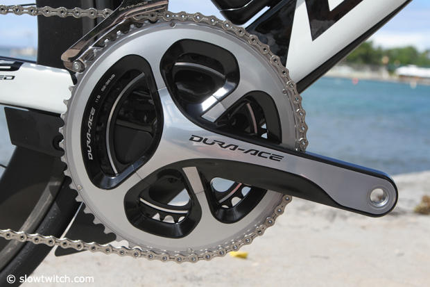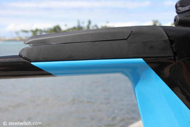 The proprietary cockpit features a 5:1 ratio foil shaped AeroDrive Tri composite base bar and is a reversible design, offering 20 millimeters of drop or rise. The armrests are adjustable from 10-40mm in height, and the extensions have a 100mm adjustment range.