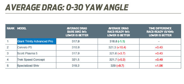 Giant shared the drag numbers of their new bike as compared to other super bikes.
