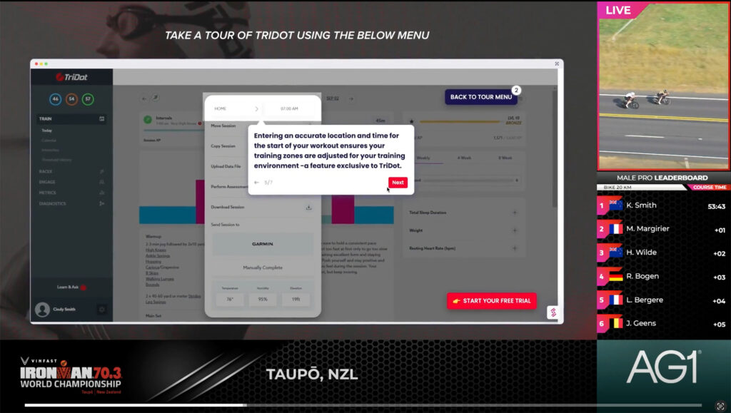 It’s very easy to hate on the advertising during an IRONMAN broadcast. You’re pretty much guaranteed to see ads for Qatar Airways, HOKA, Wahoo, Maurten, Breitling, Vinfast, etc. on a countless loop. And the ad breaks themselves often have impeccable timing; for example, starting the women’s coverage, there was an ad break less than three minutes into the broadcast. Coming right off of the back of the ad unit that had to be watched in order to access the broadcast, it can leave a sour taste in your mouth.