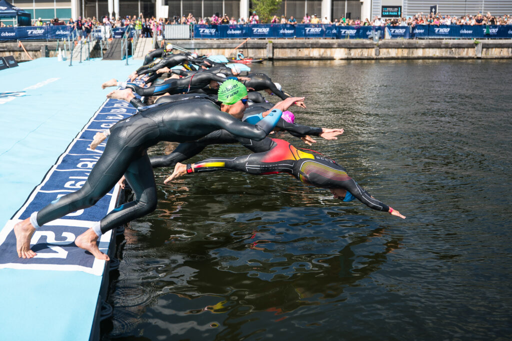 The pro men dive in at T100 London. Photo: Kevin Mackinnon
