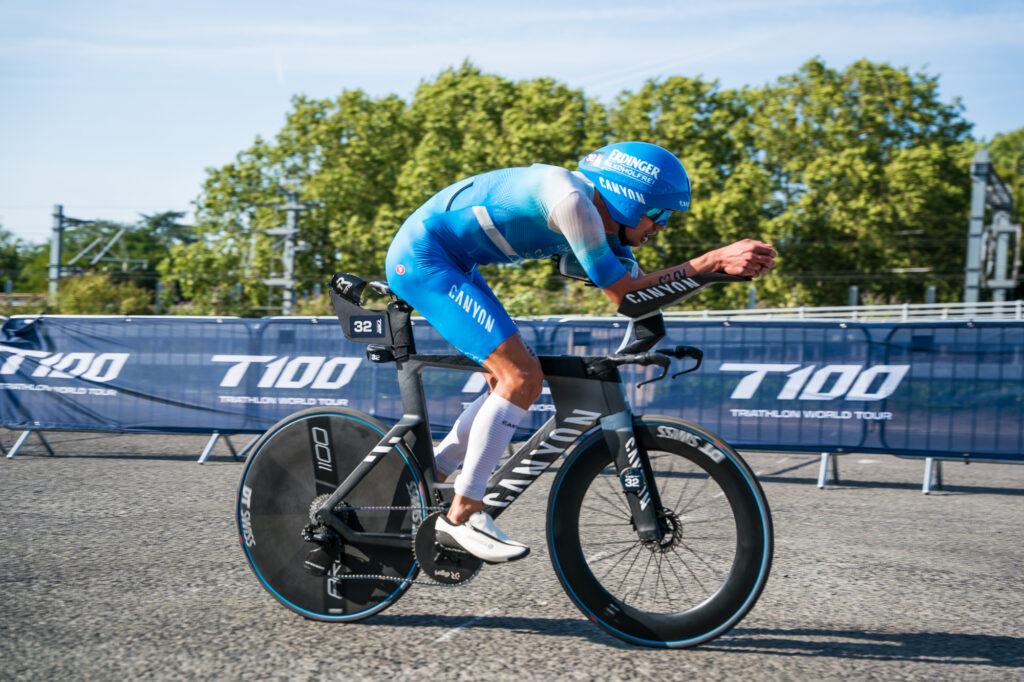 Paris Olympics bronze medallist Leo Bergere of France led the race early on in the swim. He never had too much of a lead, though, as T100 San Francisco champ Rico Bogen was just two seconds behind him as they exited the water. Dutchman Menno Koolhaas and 2024 70.3 world champion Jelle Geens were both nearby with less than 10 seconds separating them from the lead, and Germany’s Mika Noodt was 12 seconds off the pace when he got out of the water and set off for T1.