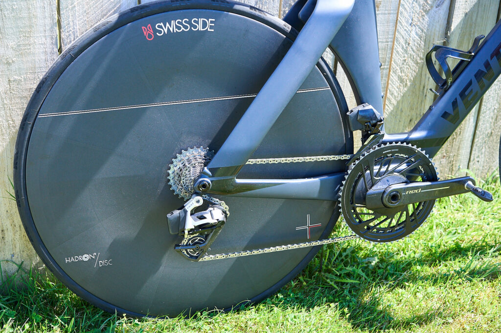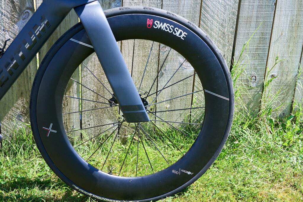 WHEELS AND TIRES: Swiss Side Hadron Disc and 80mm front with Continental GP5000 tubeless tires
