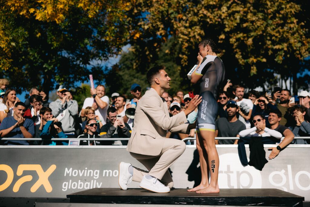 Adding to the big day for Lehair, after the podium ceremony her partner, pro triathlete Nathan Lessman (FRA), proposed.