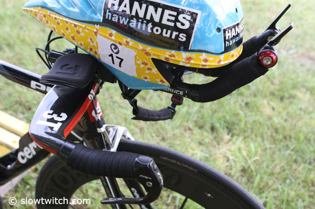 German Pro triathlete Konstantin Bachor had the fastest bike split at the 2012 Challenge Roth with a time of 4:19:30 and in the end finished 6th in a very strong field. That is not bad result for a guy who barely trains 20 hours a week and works as a police officer. Today we look closer at his Cervelo P4.