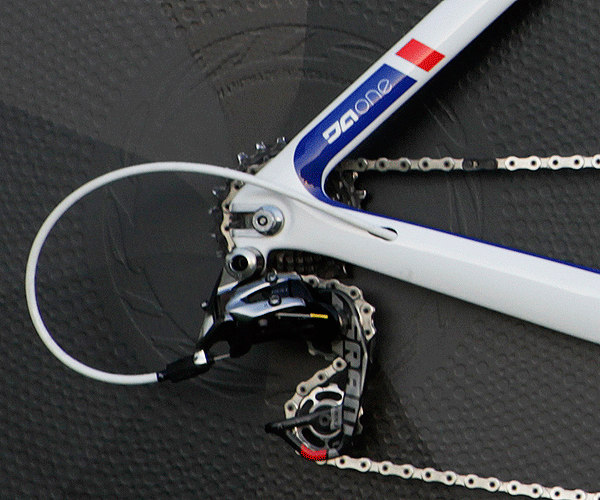 The DA mold has a lot of sexy features and I wrote about it a year ago. While the frame was designed so that electronic shifting would route easily, it accommodates mechanical shifting quite nicely. This primarily 2012 SRAM Red bike is a case in point.