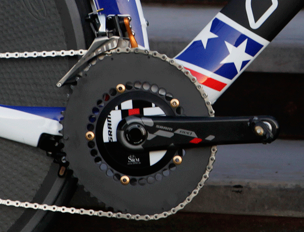 Both the male and female gold medal winner used a non-round set of rings. In this case, it's a Rotor Q-Ring set up, 54×42.