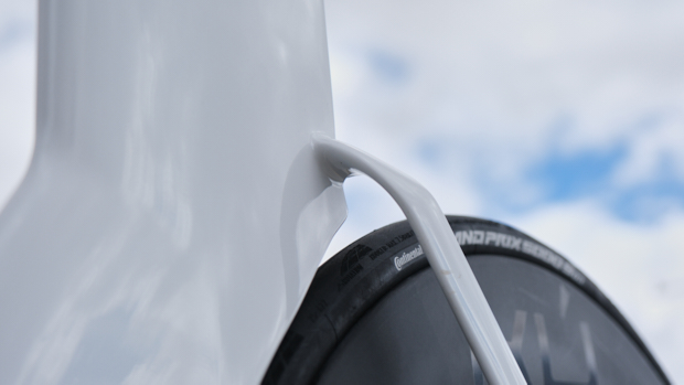 Below are a couple of screenshots from the KÚ order form and it’s pretty straightforward. The obvious distinctive element to every KÚ TF1 is the width of its fork blades and chainstays and by width I mean the distance between these members and the wheel. This is where the KÚ and the CADEX share an aerodynamic theme, which was probably first introduced to triathletes by Specialized when it launched the Shiv Disc. But the convention that KÚ obliterates is the distance from the front wheel axle to the fork crown. That has always been a given span for every bike. That distance might be slightly different from one bike to the next but it’s always a settled-upon number for any bike. Because bikes today use disc brakes there is no required distance, because there are no rim brake pads to consider. KÚ doesn’t make its bike’s head tubes longer or shorter based on your handlebar height. It makes the fork blades longer or shorter. This is unheard of. Not done. But it’s not impossible to do. It just requires extremely unconventional thinking.