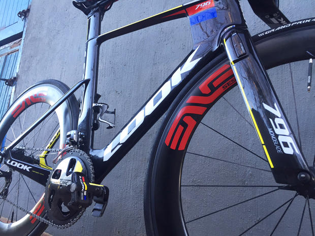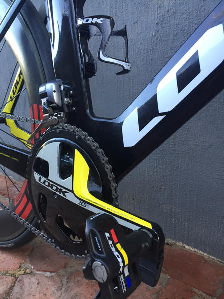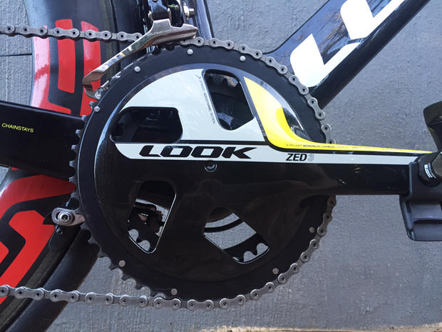 Up close with the aero appearing Look ZED crank. Buckingham rides it in a 172.5 position.