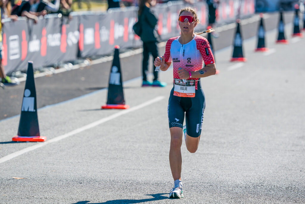 “There wasn’t a quiet moment on the run course,” Imogen Simmonds said after the race. “And, although advertised as flat, I think there was only 1 km of flat on the course.”