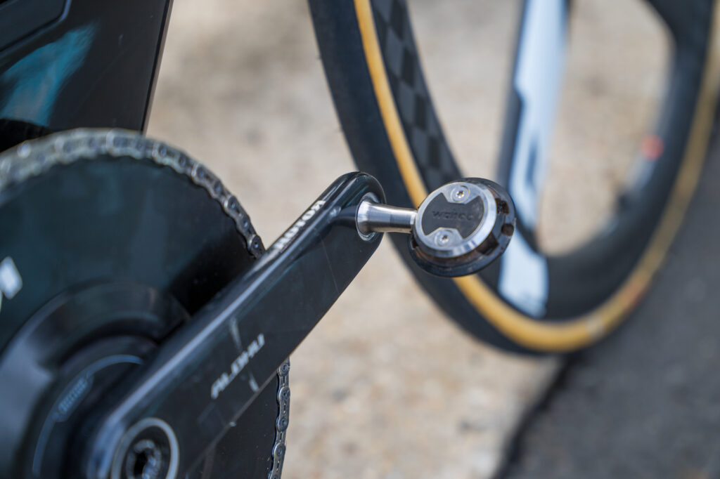 Byram rides a 54-tooth, 1X chainring, 165 mm cranks and uses Speedplay Aero pedals. The Roto InSpider meter provides power data.