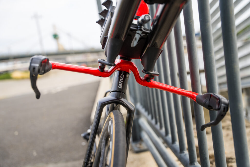 Attached to the BMC base bar is Wattshop Anemoi MK2 aero bars.