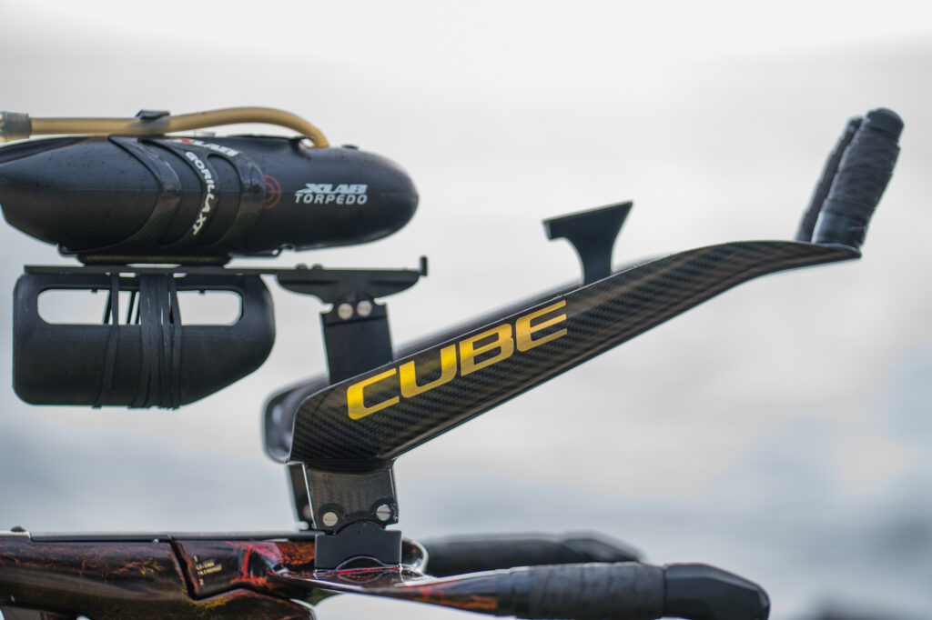 | Front Hydration System | 1 XLab Torpedo bottle with Gorilla XT cage, plus Cube in-frame hydration. Cube also designed a special carrier for Charles-Barclay’s gels |