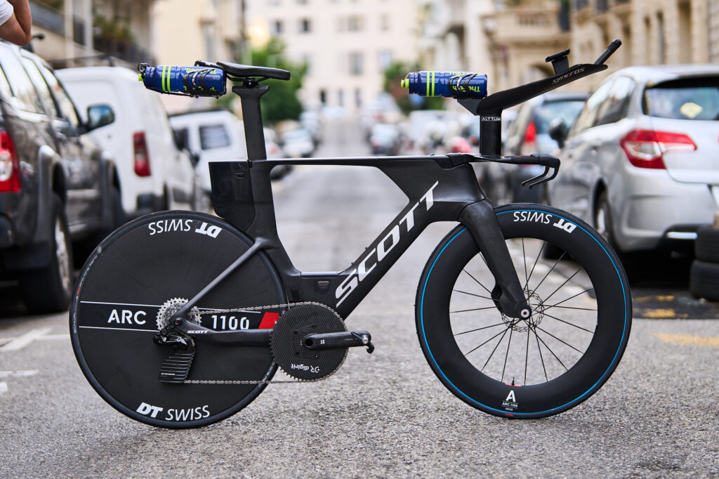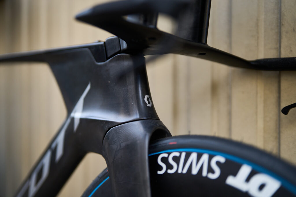 Ditlev’s Scott Plasma 6 was completely stripped of paint, which saved 250 to 300 g off the total weight of the bike. There’s a Shimano Dura-Ace 12-speed drivetrain, with CeramicSpeed OSPW Aero Alpha pulleys.The chain is the Shimano Ceramic Speed UFO Factory Optimized.