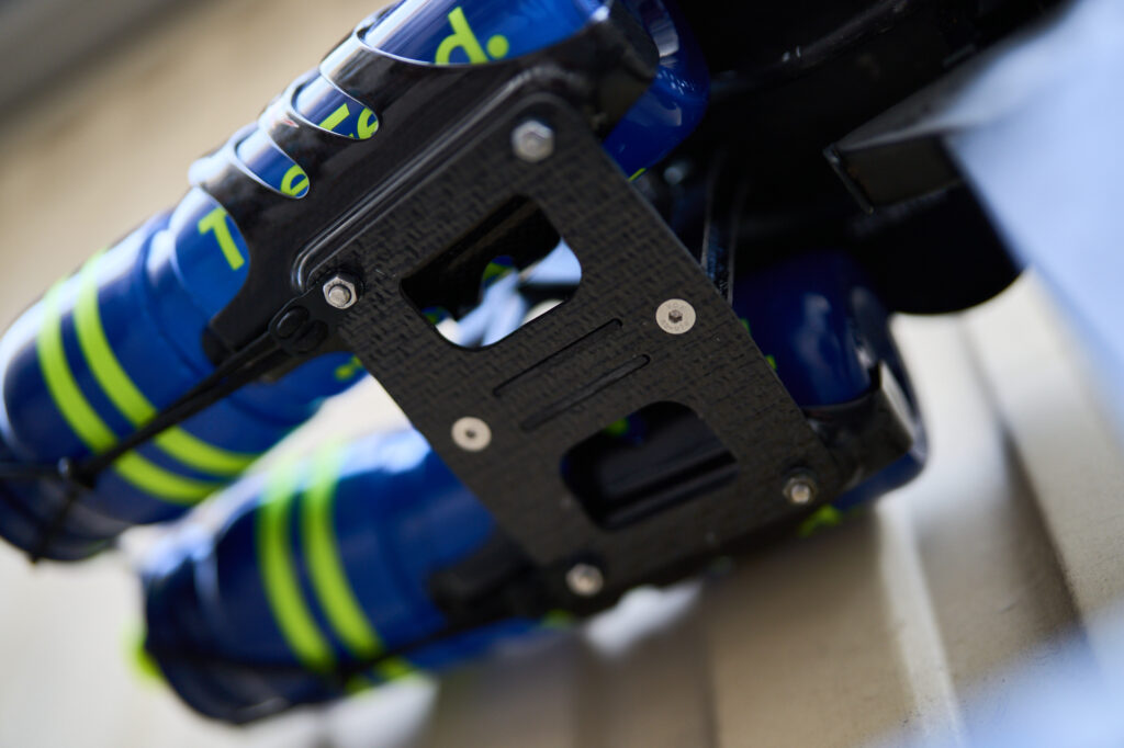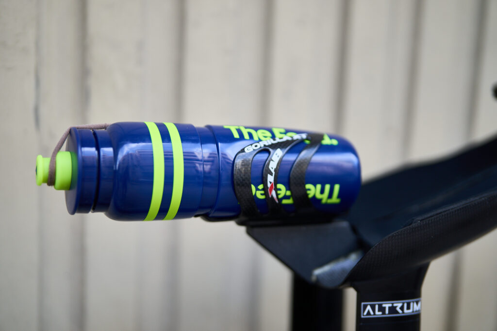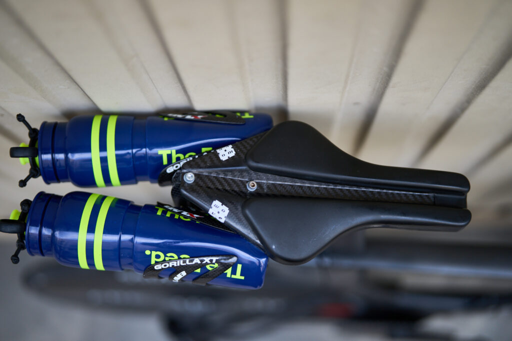 … has a double water-bottle mount that, like the BTA mount, was designed by Marco Mani at Altrum. Ditlev also takes advantage of the integrated top tube hydration available in the Scott Plasma frame.