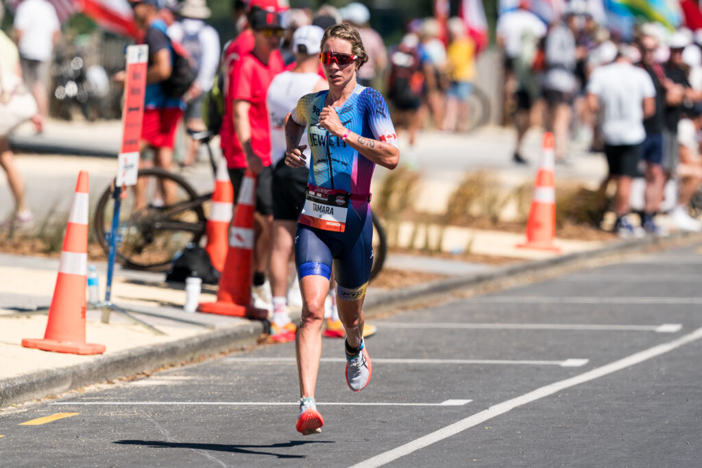Jewett is routinely among the fastest runners at 70.3 races, and she ran a 2:40:05 marathon at IRONMAN Lake Placid earlier this year. Photo: Kevin Mackinnon