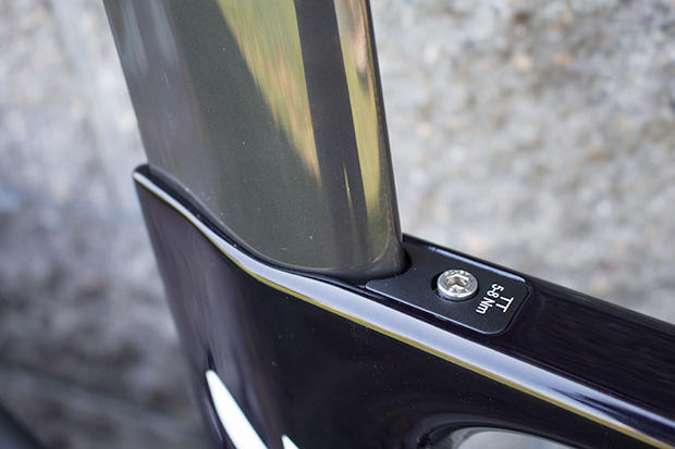 We managed to get pics of this new PARLEE TTiR super bike before it travels to various bike shows and gets likely drooled on. Notice also how nicely PARLEE shielded the discs for improved aerodynamics. The disc mounts are of the flat mount variety and the axles are 12mm front and rear.