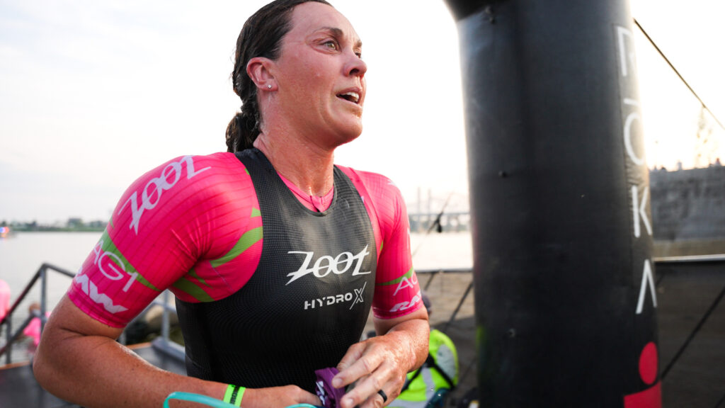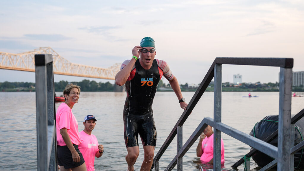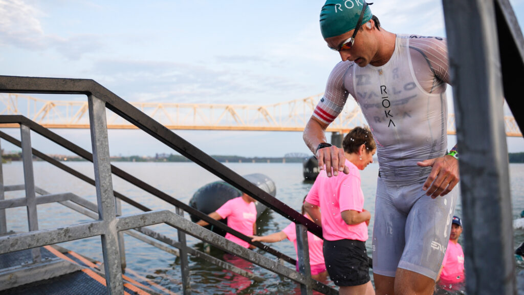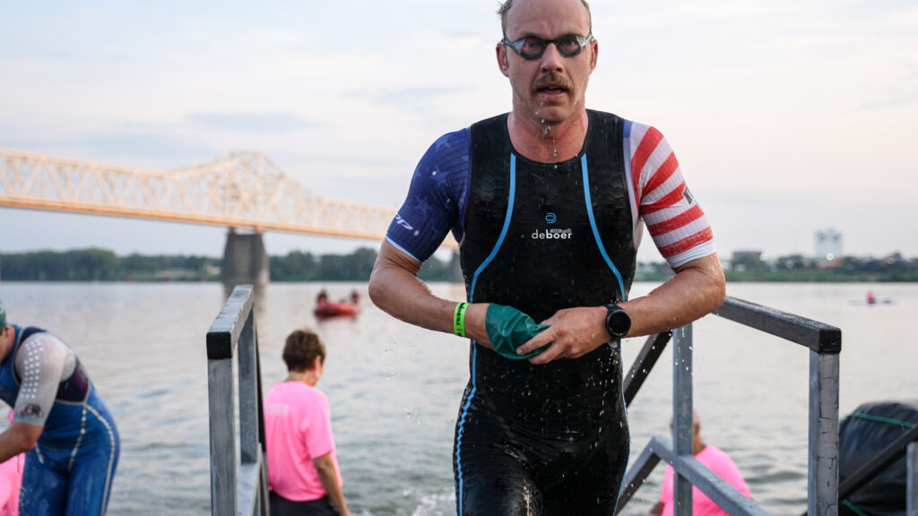 Trevor Foley exits the swim and wants to forget that 86 degree water bath.