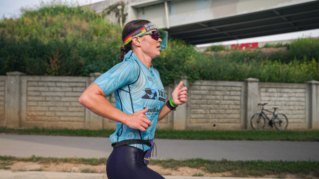 Posting the fastest bike split (2:20:56), Gabrielle Lumkes would start the run just behind a group of three.
