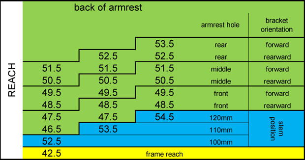 With all pedestals out, gone, everything slammed, I can get as low as a Pad Y of 64cm. This means one of three things: that I need to go to the next size down (52cm); or that I need to accept the luxury or armrests 10mm higher; or that I do what Matt Hansen did and replace the Profile Aeria with a handlebar that is lower profile (like the TriRig).