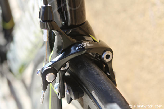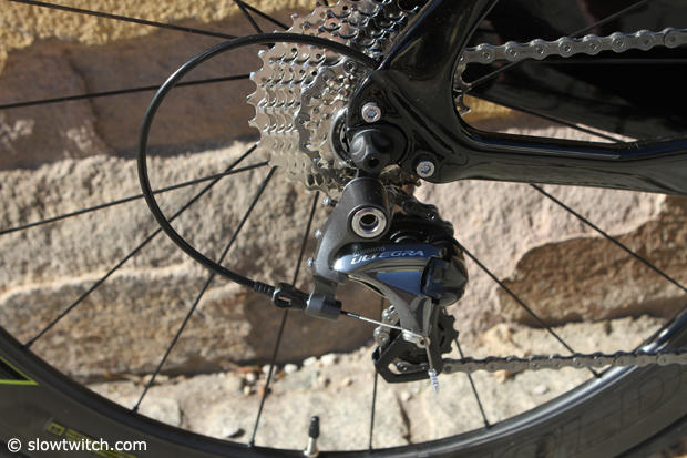 As we mentioned earlier this model comes standard with a Shimano Ultegra mechanical group. The bike pictured here has the more expensive wheels from the next model up.