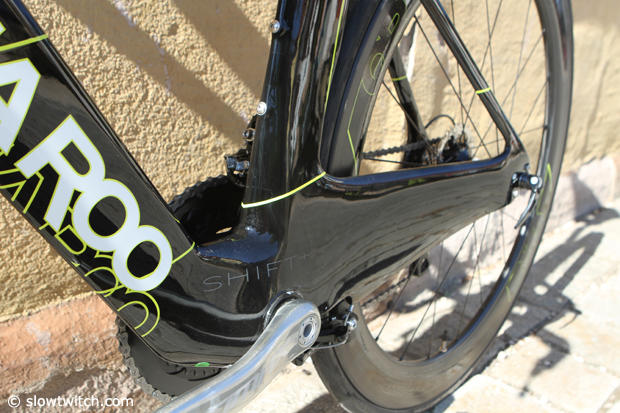 Shift Technology means that an offset downtube on the non-drive side moves airflow via an oversized flattened chainstay to the clean air side of the bike.