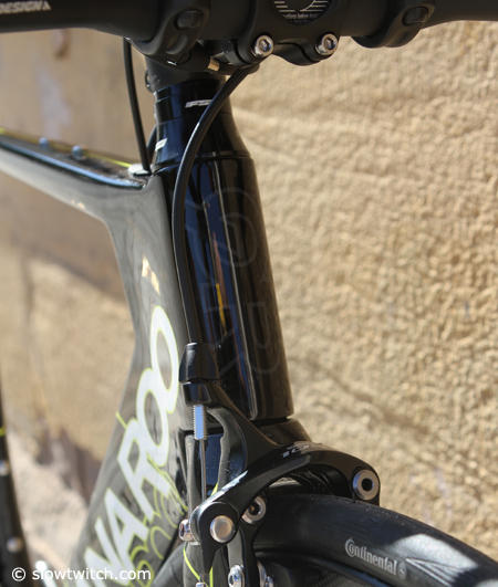 A traditional aero fork and stem make for a very clean front end.