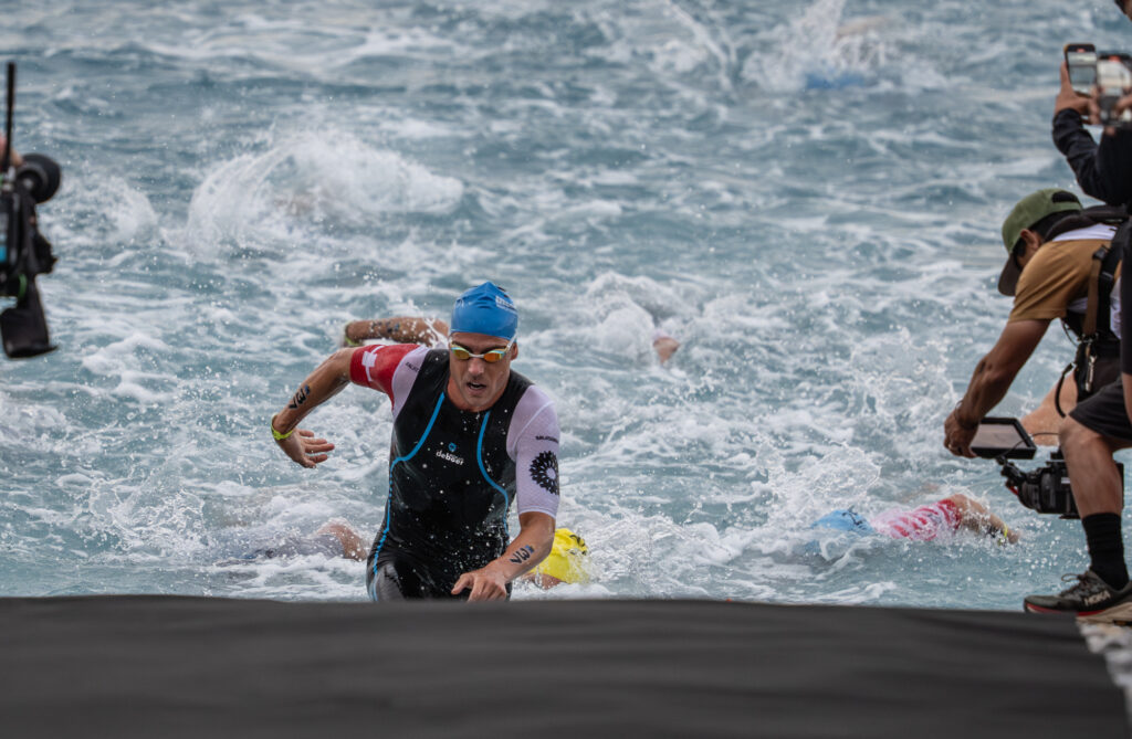 As Laidlow told us after the race, he had cramps in both hip flexors that he found debilitating, nearly pulling the plug on the event before it had really gotten started. “I had to stop and stretch it out,” he said. “It was a long swim. I couldn’t wait to get out of the water, to be honest.” (Editor’s Note: you know you have incredible swim talent when you have to stop to stretch and you still clock a 47 minute swim.)