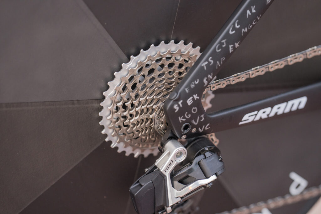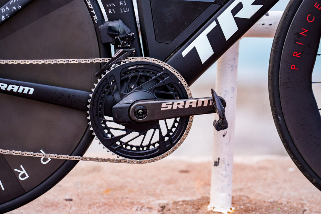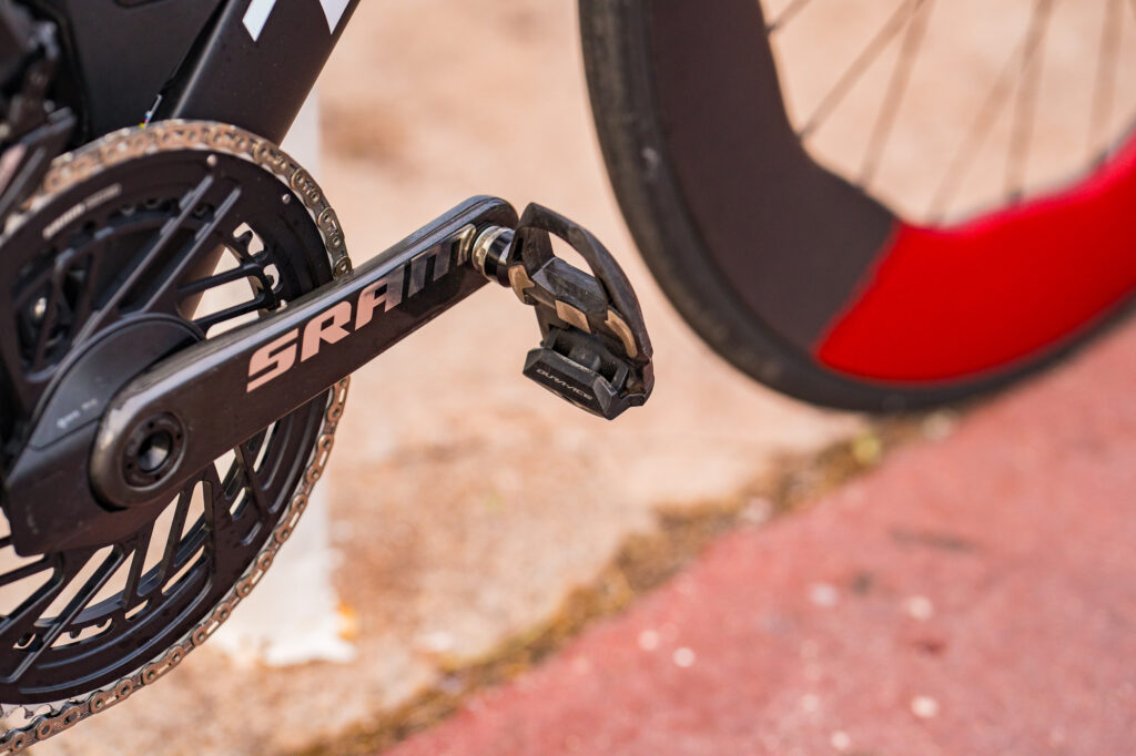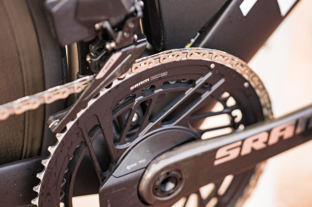 Marquardt is running SRAM Red components and used the included power meter. He’s got a 56/43 chainring on the front.
