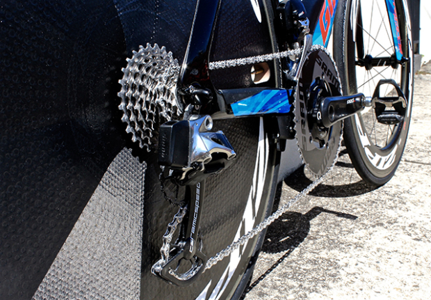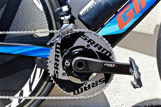 The SRAM Red eTap group on Appleton's Giant features a Quarq Dzero power meter and 55/42 SRAM aero chain rings.