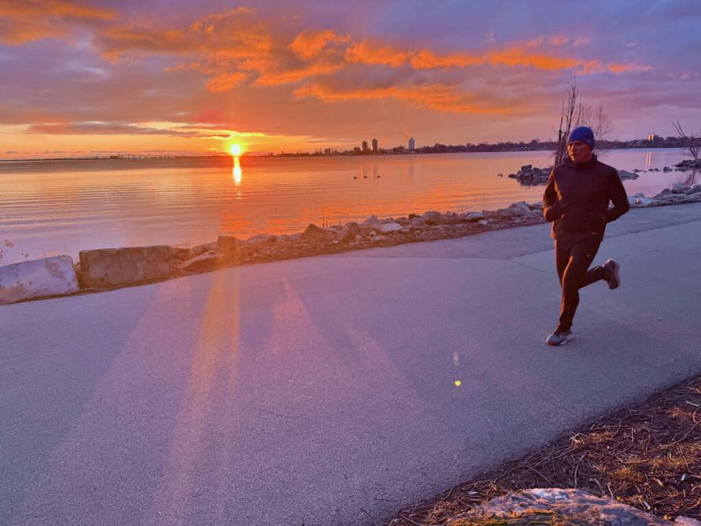 Triathlete Andrew Nevills enjoys a sunrise run in December in Hamilton, Ontario. Photo: Kevin Mackinnon
