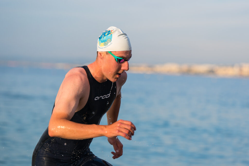 There weren’t a lot of pro athletes at the swim, with 18-24 age-grouper Askey-Doran leading the way onto the rocky beach here in Nice in 22:47, with Switzerland’s Sven Thalmann finishing in 23:11 and Germany’s Wilhelm Hirsch rounding out the top three in 23:21.