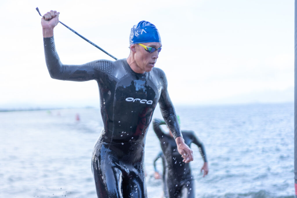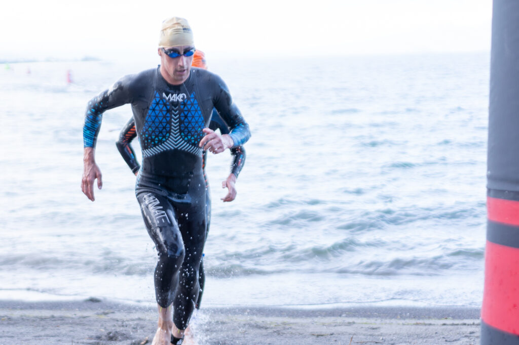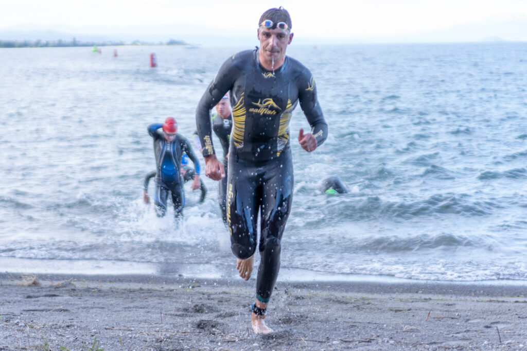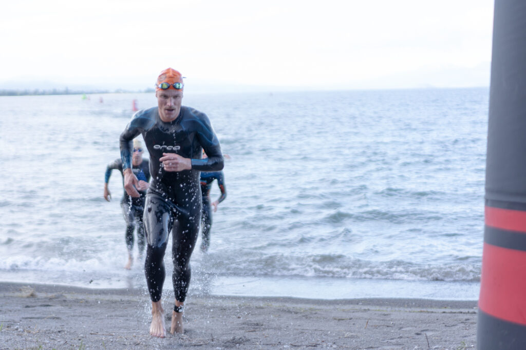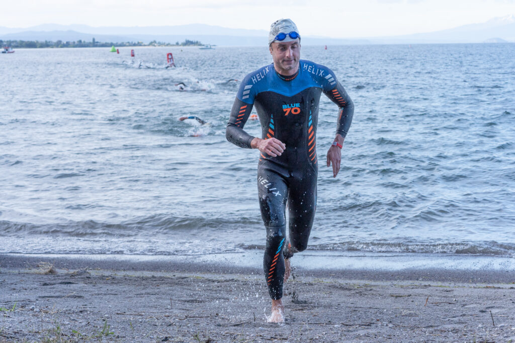 Here’s a look at the first 10 men to exit Lake Taupō and make their way to the bike: