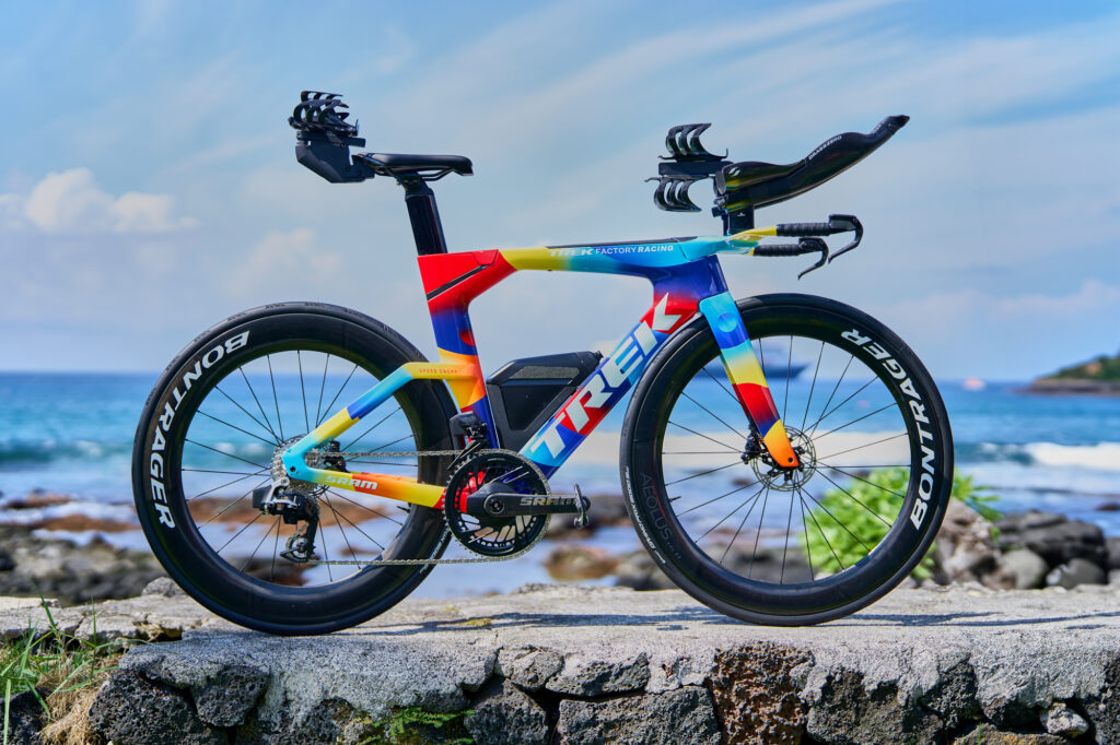 Slowtwitch got an early look at her ride ahead of the big race on the Big Island. She has a new paint scheme on the bike from Trek, which they’ve called the Project One “Gamut” — a look that Knibb’s fellow Trek riders Holly Lawrence and Skye Moench will also be repping on Saturday, as well as one that is now available to consumers.