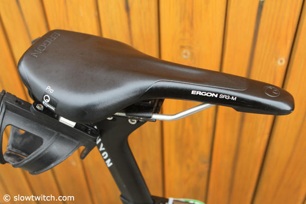 Ergon saddles are not very common on Pro triathlon bikes – at least not in North America,