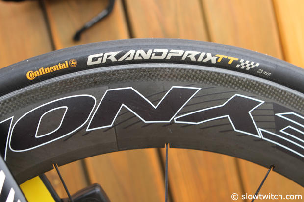 A Reynolds Aero 72 wheel up front with Continental GrandPrix TT tires.