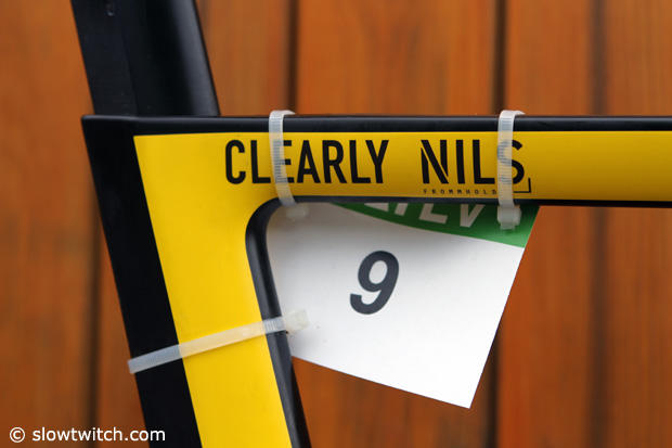 This editor could not help giving this fast Pro some advice on race number fastening.