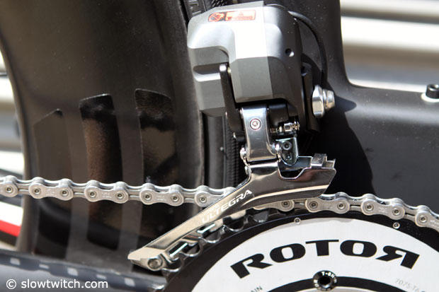 The Shimano Ultegra Di2 front derailleur is smooth as butter.