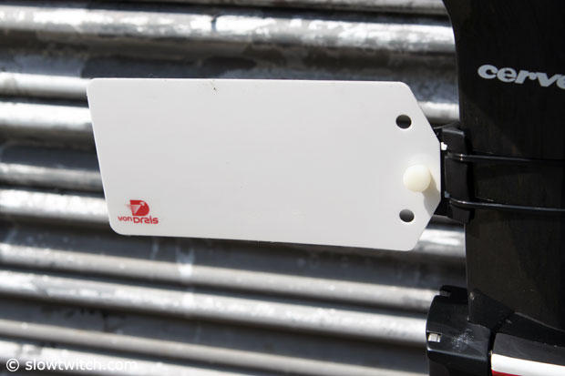 This Von Drais number holder is still on from the last race, and is an excellent way to prevent having sticky crap on your frame.