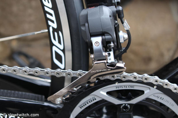 The Shimano Dura-Ace Di-2 front derailleur.