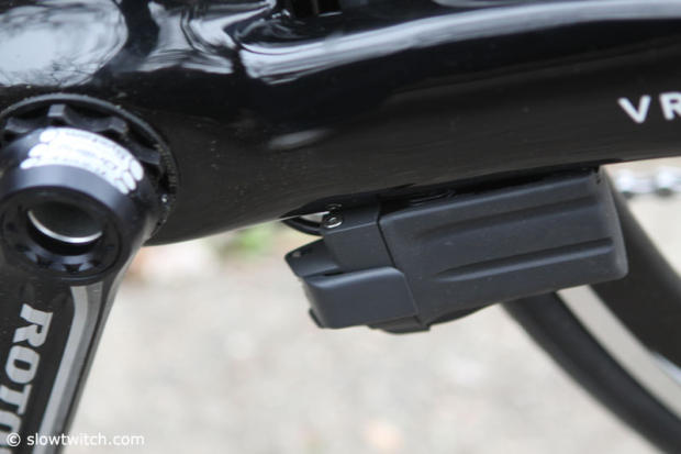 The Shimano Di-2 battery is placed under the non-drive chainstay.