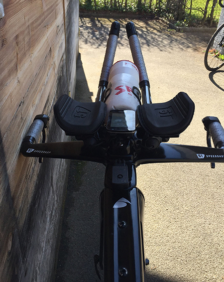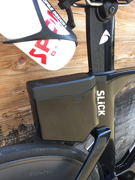 According to van Berkel the Garmin 820 and hydration BTA mount were specifically designed by Factor. A bento box will be added soon to store gels and hide the Di-2 junction box.