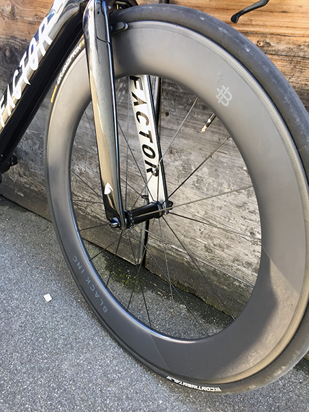 Jan van Berkel rides Black Inc 80 wheels laced up with 23mm Continental TT Limited tires.