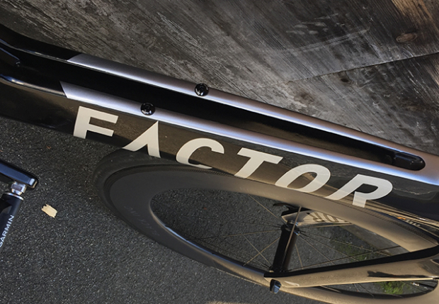 Ready for action this Factor Slick bike is equipped with Shimano, Black Inc, Garmin, Continental and 51 Speedshop components.