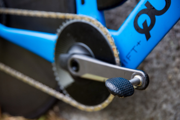 Hovda rides 165mm SRAM RED AXS 1X cranks with a 50 tooth ring and an integrated power meter.
