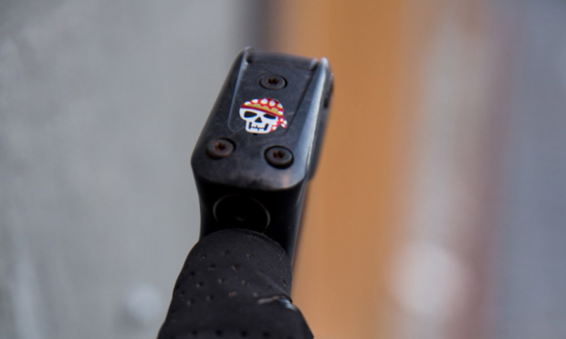 “My oldest son who is five-years-old thought I should have a sticker on my bike and he is heavily into pirates. It reminds me to go into a ‘take-no-prisoners’ mindset during racing,” explained Hovda.